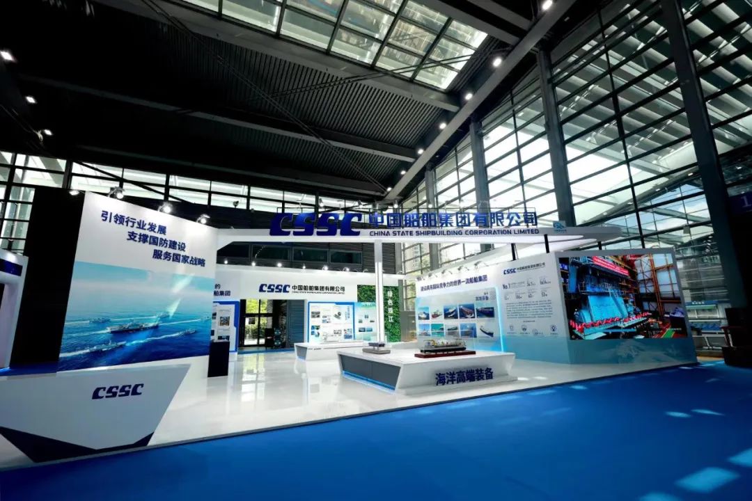 在大會的展示環節,中國船舶集團展臺通過集團總體、海洋防務、海洋高端裝備、工藝技術創新發展、海洋經濟新業態、工匠風采、“奮斗者”號、綠色珠江八個板塊,分別展出了7500立方米液態二氧化碳運輸船、半潛式全自動現代化三文魚深海養殖裝備、合金鋼中間軸在大型油船上的首次應用等55項創新成果,并展示了28位工匠代表的風采。集團公司展臺采用開放、通透的布局,突出中國船舶品牌元素,集中展示集團公司立足新發展階段,貫徹新發展理念,在戰略重組后以高質量發展為主題,壯大主業實業、加快推動船海產業向中高端轉型發展,以及大力弘揚軍工精神和勞模精神、勞動精神、工匠精神,強化自主創新的整體實力和在推動低碳環保、區域經濟發展等方面的最新成果。集團公司還通過本屆大會“互聯網+展會”模式開設的“云展會”,讓參觀者線上云游中國船舶展臺,擴大企業品牌影響力。