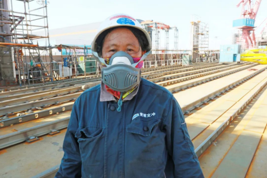 近40度的高溫天氣下,一位造船精度人堅守崗位,使用全站儀監控船塢每個搭載總段的定位精度,保障一次搭載到位。
