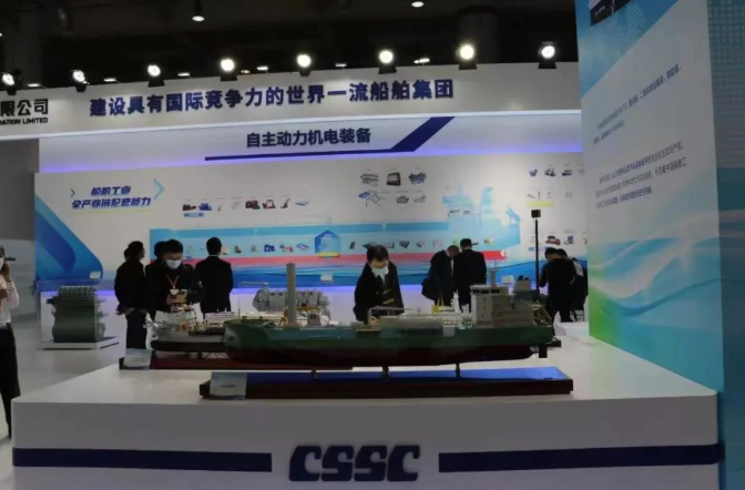 展臺上,雙燃料主機、WIN GD 船用柴油機、CS27智能中速柴油機、20V175高速柴油機4型產品系列主機模型集中展示了中國船舶集團公司在實現動力裝備自主可控、機電產品國產化替代領域的明星產品;綠色低碳環保裝備重點展示了船舶脫硫系統、船用低壓脫硝系統、船用壓載水處理系統;全產業鏈配套能力,主要從甲板機械、艙室設備、船舶動力裝置、船舶動力裝置關重件、推進裝置等配套裝備集中展示中國船舶集團全產業鏈配套能力;攻克關鍵核心技術重點展示了在加強原創性、引領性核心技術自主可控工程與關鍵核心技術攻關領域取得的主要成果與應用。目前,中國船舶集團擁有國內最強的船用配套設備設計、制造、試驗驗證能力,在全球具有一定的品牌影響力。