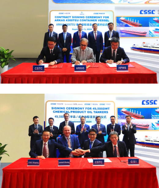 此次展會上,集團公司有關成員單位負責人率隊赴展會開展重點船海項目經(jīng)營洽談并拜訪當?shù)睾椭苓厙抑饕蛻簟<瘓F公司以“高端綠色、領跑未來”為參展主題,展臺設置了集團總體區(qū)、高端綠色船舶區(qū)、先進動力配套區(qū)共3個展示區(qū)域,重點展示了首艘國產(chǎn)大型郵輪、27.1萬立方米超大型LNG(液化天然氣)運輸船、10800車LNG雙燃料汽車運輸船、全球首艘LNG雙燃料VLCC(超大型油船)、21萬噸氨燃料散貨船、9.3萬立方米超大型全冷式液化氣船等一系列技術(shù)含量高、全球競爭力強的高端綠色船型,以及CPGC-WinGD 10X92DF-M甲醇雙燃料發(fā)動機、船用供氣系統(tǒng)、船用碳捕捉系統(tǒng)、船舶新能源動力系統(tǒng)解決方案等滿足IMO(國際海事組織)當前和未來排放要求的先進動力配套設備,充分彰顯了中國船舶集團的國際化品牌形象及引領國際船舶市場創(chuàng)新發(fā)展的澎湃動力。