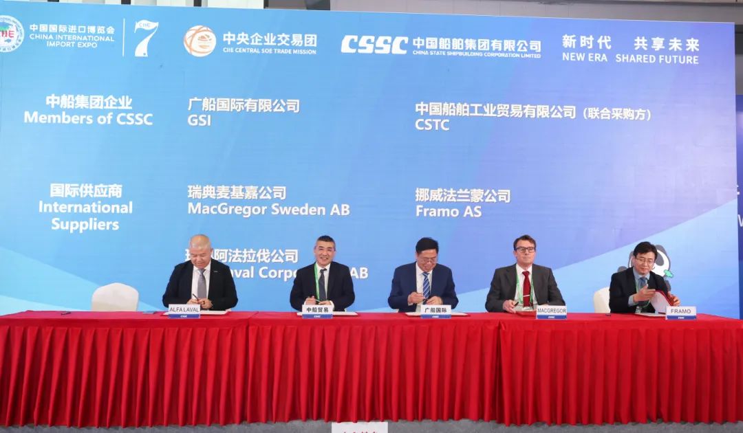 中國船舶集團有限公司黨組成員、副總經理盛紀綱應邀參加第七屆進博會暨虹橋國際經濟論壇開幕式,出席11月6日下午舉行的第七屆進博會國資委中央企業交易團中國船舶交易分團采購集中簽約儀式并致辭。