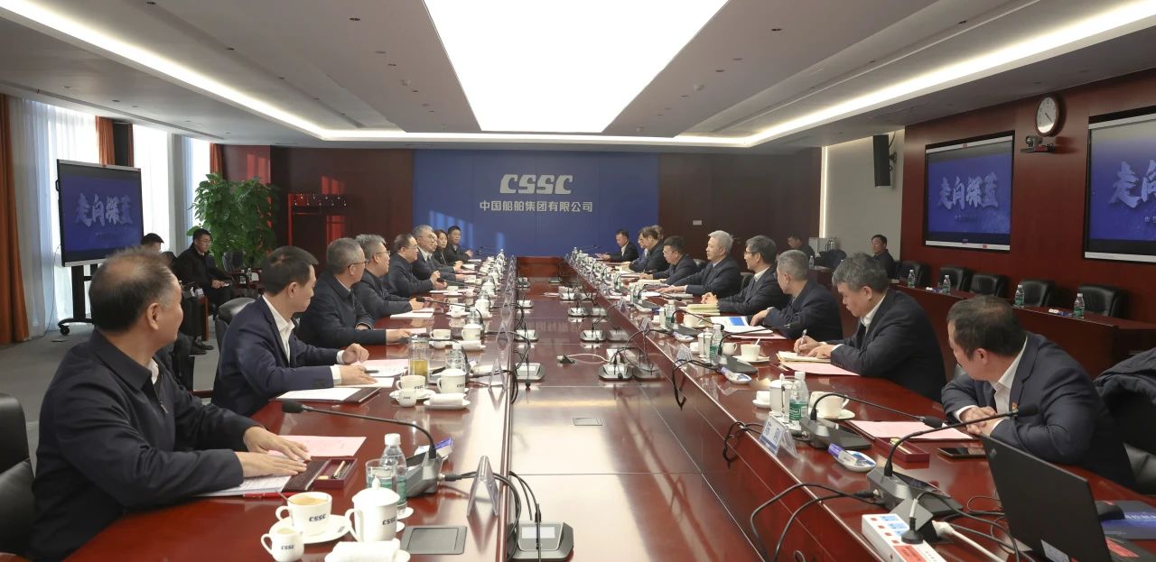 徐鵬對(duì)段向東一行的來(lái)訪表示歡迎,并介紹了集團(tuán)公司業(yè)務(wù)發(fā)展情況。徐鵬表示,中船集團(tuán)與中鋁集團(tuán)長(zhǎng)期以來(lái)保持良好合作關(guān)系,交流合作廣泛、基礎(chǔ)深厚、前景廣闊。中船集團(tuán)將按照“1-1-7-8”總體思路奮力推進(jìn)世界一流船舶集團(tuán)建設(shè)邁上新臺(tái)階,希望雙方建立健全長(zhǎng)效溝通合作機(jī)制,協(xié)同推進(jìn)關(guān)鍵技術(shù)、裝備研制攻關(guān),深化多領(lǐng)域、多層次合作,共同服務(wù)好國(guó)家重大戰(zhàn)略。