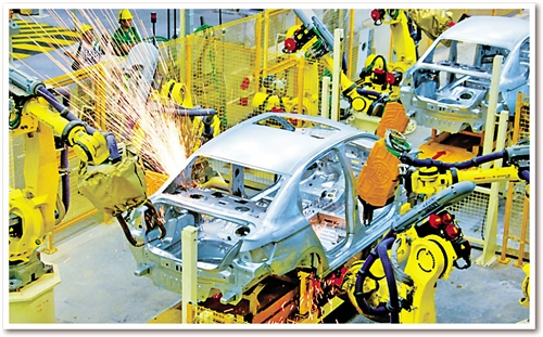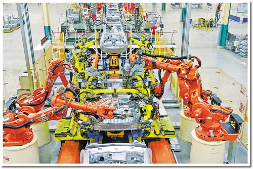 日前,記者在東風汽車公司旗下神龍汽車公司成都工廠焊裝車間看到,占地面積約10個足球場的車間儼然就是一個“機器人王國”:442臺各種機器人都在忙碌著,所有點焊、弧焊、激光焊、螺柱焊、涂膠、包邊、鉚接、部件搬運等“重活、累活”全部由機器人自動完成。焊裝分廠廠長孫繼勝介紹說,除442臺機器人外,車間還有另外一個“撒手锏”??六面體轉臺設備。“原來生產1個車型要建6條生產線,現在1條生產線就可以生產6種車型。”孫繼勝說。