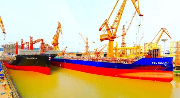 ????4月10日,中國船舶集團旗下黃埔文沖為希臘COSMOSHOP公司建造的1500TEU.GO集裝箱船4號船H5655船以及為新加坡太古公司建造的2350TEU.C集裝箱船4號船H5529船