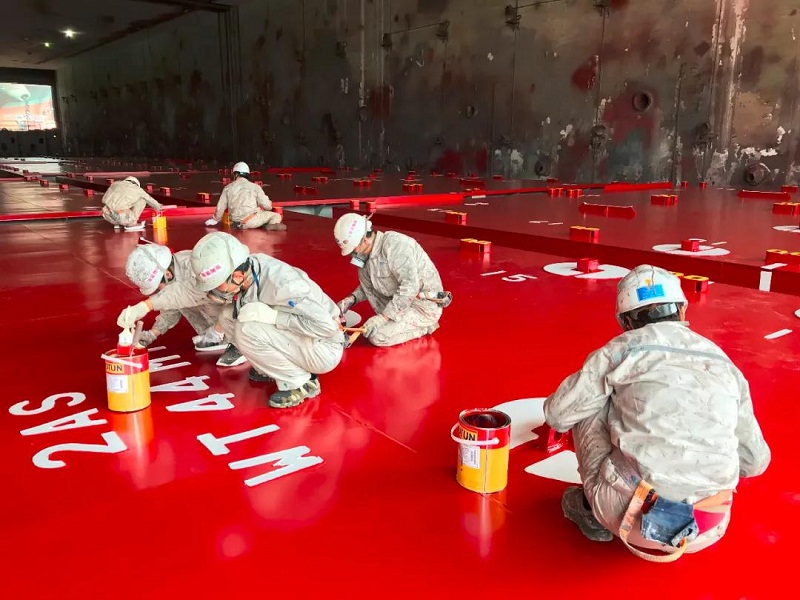 ????H1473船艙口蓋采用特殊油漆,噴涂尤為講究——只有保證在75微米~100微米區(qū)間內(nèi)才算合格,厚度就跟一根頭發(fā)絲一樣。并且,在噴涂的過(guò)程中需要及時(shí)檢驗(yàn),一旦冷卻后再發(fā)現(xiàn)過(guò)薄或者過(guò)厚的問(wèn)題,都需要從沖砂開(kāi)始重頭再來(lái)。這一任務(wù)不僅是時(shí)間緊張,工藝、難度都是一座高山“壓”在涂裝二部職工身上。