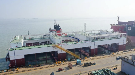中國船舶集團旗下廣船國際為海南省建造了首座半潛式深遠海智能養殖旅游平臺“普盛海洋牧場1號” 。