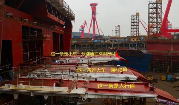 其次,大車停在3甲車庫,小車停在5甲車庫,可使船舶的重心會更低、整體更穩(wěn),最重要的是還考慮到港口條件進行了量身定做。
