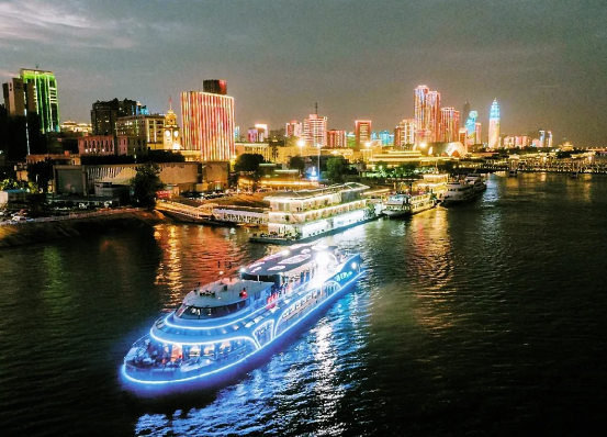 我國(guó)第一艘新能源全電動(dòng)商旅游船“君旅號(hào)”于近日在長(zhǎng)江正式起航。該船全套動(dòng)力系統(tǒng)均由中國(guó)船舶集團(tuán)七一二所研發(fā)制造。“君旅號(hào)”長(zhǎng)53.2米,寬14.3米,共2層,可搭乘300名游客,游覽線路處于長(zhǎng)江主軸核心區(qū)域,1小時(shí)就可觀賞江漢關(guān)、黃鶴樓、長(zhǎng)江燈光秀等景觀。
