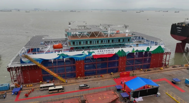 中國船舶集團(tuán)旗下廣船國際建造的半潛式深遠(yuǎn)海智能養(yǎng)殖旅游平臺(tái)“普盛海洋牧場6號(hào)”命名交付。