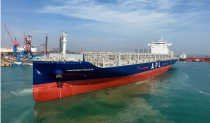 近日,由北海造船與上船院聯合設計、北海造船聯合中船貿易為達飛輪船建造的第3艘5500TEU集裝箱船交付。
