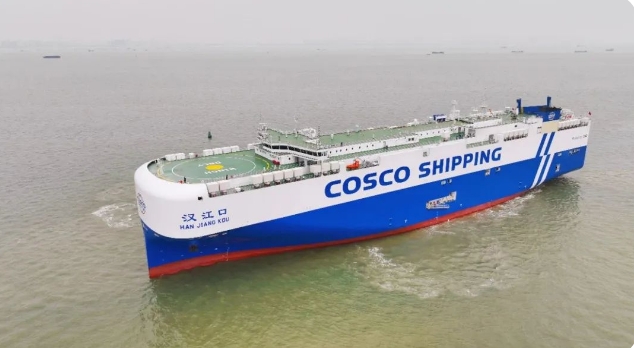 4月21日,中船集團(tuán)旗下廣船國際聯(lián)合中船貿(mào)易建造的7000車液化天然氣(LNG)雙燃料動力汽車運輸船“漢江口”號舉行命名交船儀式。據(jù)了解,該船交付后,首航次將從上海裝載國產(chǎn)汽車奔赴智利、秘魯、危地馬拉等國家。