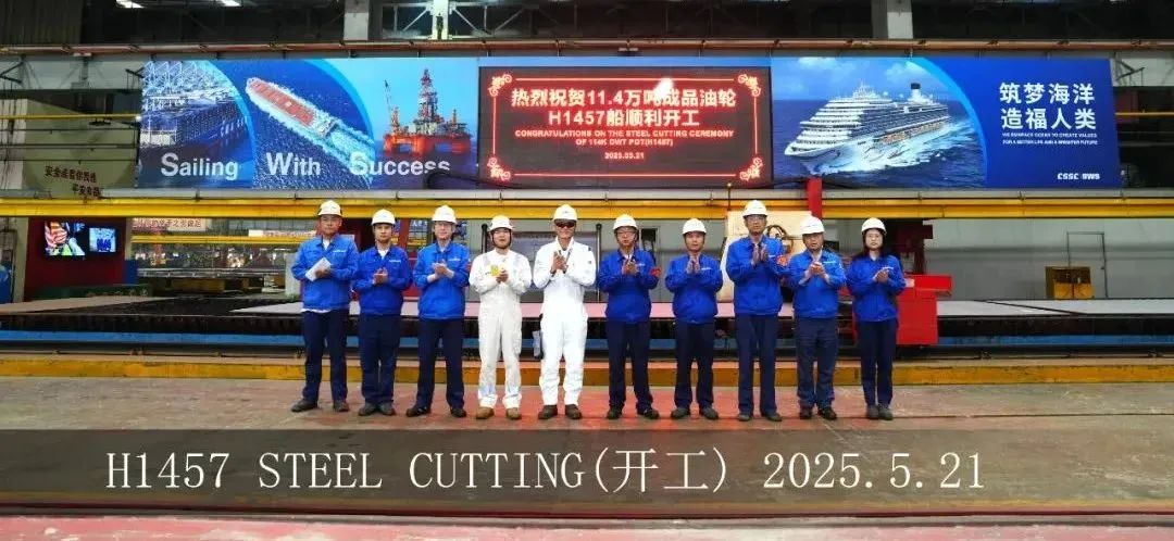 5月21日,外高橋造船為土耳其YASA公司建造的11.4萬(wàn)噸阿芙拉型油船H1457船開工儀式順利舉行。目前,各項(xiàng)生產(chǎn)準(zhǔn)備工作均在按計(jì)劃落實(shí)。